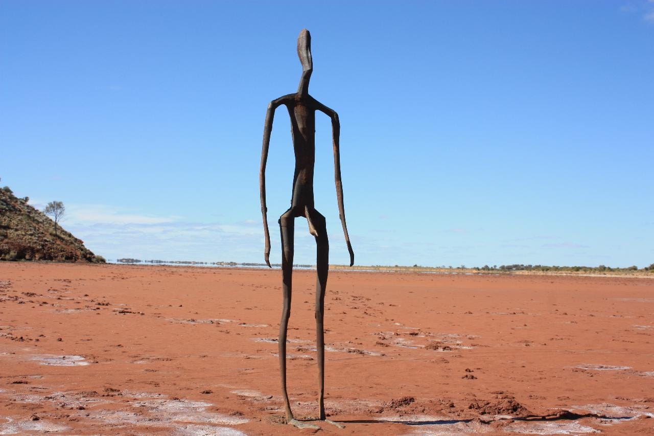 Lake Ballard “Inside Australia Art Instillation” is created by world-renowned artist Antony Gormley s at one of Western Australia’s most unusual and remote cultural attractions – Inside Australia. The artwork is a collection of 50 black steel sculptures standing over 10 square kilometres of the white salt plain of Lake Ballard near the town of Menzies. Each sculpture represents one of the 131 residents, whose bodies were scanned for casts.