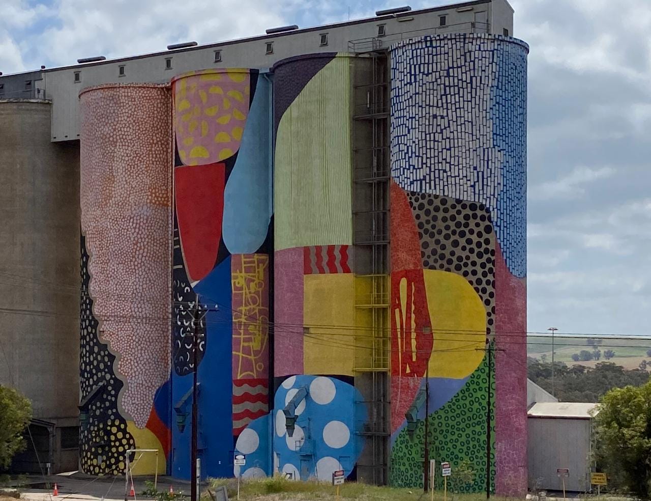 Visit the Cooperative Bulk Handling (CBH) Grain Silos which were the first to be painted in Australia. Painted as part of FORMS’s PUBLIC 2015 initiative. The silos’ bear artwork from Phlegn (UK) and Hense (USA).