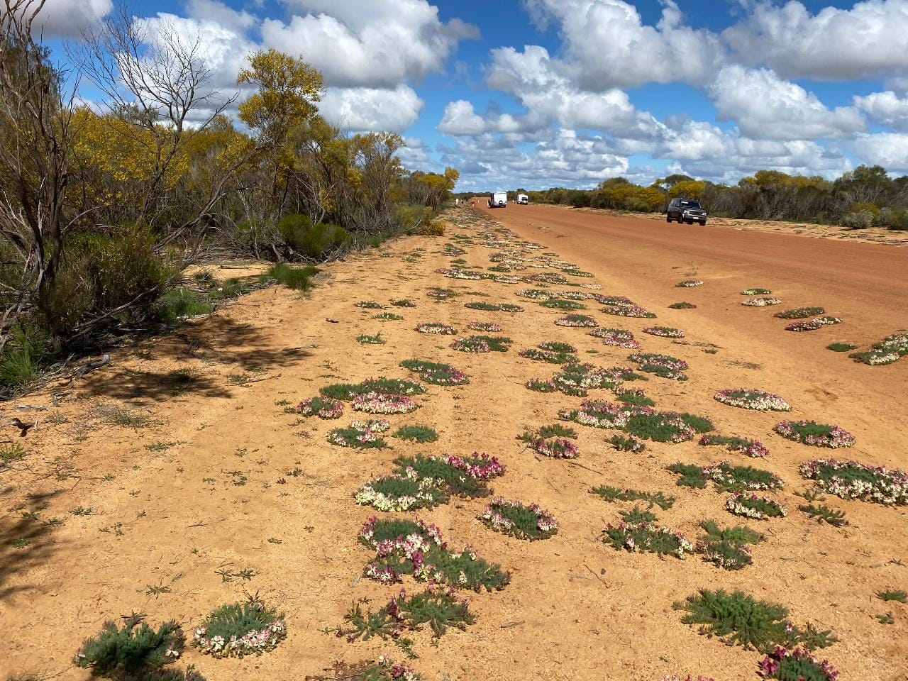 At Pindar browse along the road verge to marvel at the iconic Lechenaultia macrantha common name wreath Lechenaultia, an absolute must see.